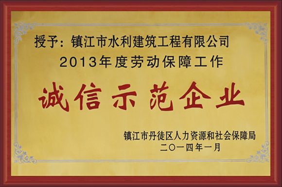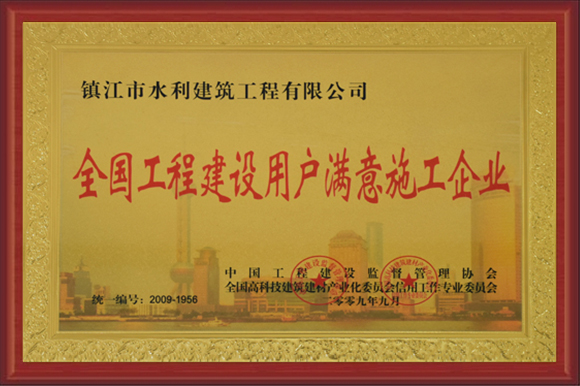 公司被評為重合同守信用企業(yè)、江蘇省水利安全生產(chǎn)標(biāo)準(zhǔn)化二級(jí)單位、AAA級(jí)資信企業(yè)、誠信示范企業(yè)、全國工程建設(shè)用戶滿意施工企業(yè)。